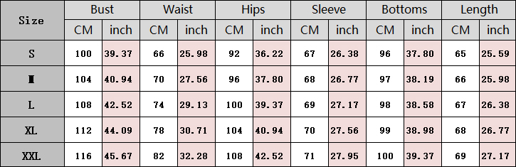 1.There maybe 1-2 cm deviation in different sizes, locations and stretch of fabrics. Size chart is for reference only, there may be a little difference with what you get.
